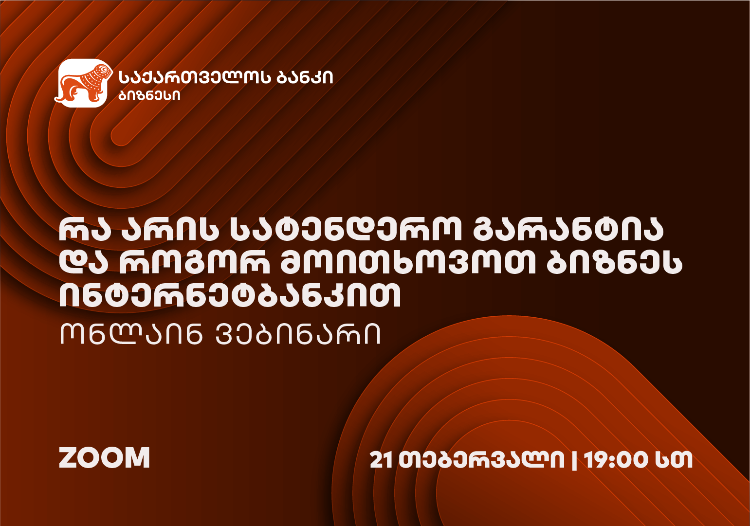 საქართველოს ბანკი ბიზნესმომხმარებლებს მათთვის საჭირო სერვისების და პროდუქტების შეთავაზებას აქტიურ რეჟიმში აგრძელებს. ახლახანს, ბანკმა ბიზნესმომხმარებლებისთვის სატენდერო გარანტიის აღების პროცესი გაამარტივა და სწორედ ამ მიზნით, ბანკის ორგანიზებით, 21 თებერვალს 19:00-ზე, სატენდერო გარანტიების შესახებ ვებინარი გაიმართება.