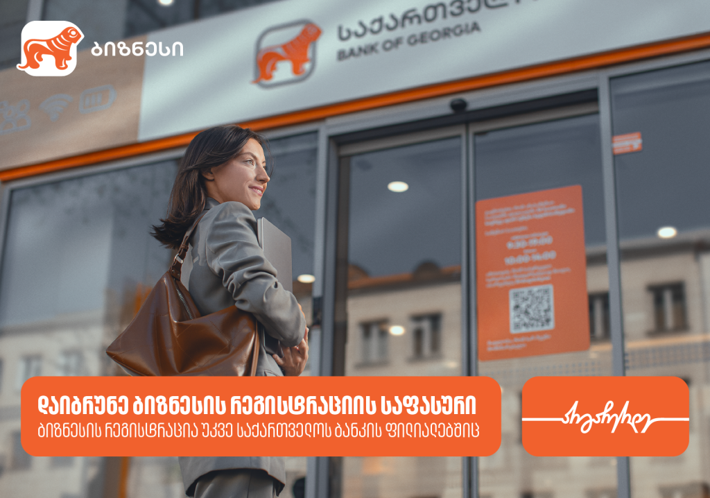 საქართველოს ბანკი ბიზნესის მხარდაჭერისა და სამეწარმეო საქმიანობის წახალისების მიზნით, მომხმარებლებს ახალ შესაძლებლობას სთავაზობს — ბანკის ფილიალში ბიზნესის სამეწარმეო რეესტრში რეგისტრაციის შემთხვევაში, ისინი მომსახურების სტანდარტულ საფასურს ნაწილობრივ ან სრულად დაიბრუნებენ.