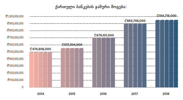 საბანკო სექტორი ერთ-ერთი ყველაზე სტაბილური მოგების მაჩვენებლით გამოირჩევა, 2018 წლის განმავლობაში ქართული ბანკების ჯამურმა მოგებამ 5.1%-იანი ზრდის შედეგად 914 მილიონ ლარს მიაღწია.