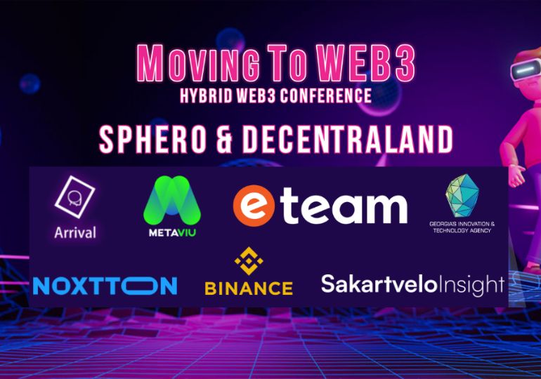 Moving to WEB3 ღონისძიების ორგანიზატორი იყო Arrival – მეტავერს ღონისძიებების სააგენტო, რომელიც ეხმარება კომპანიებს, ორგანიზაციებს ჩაატარონ სხვადასხვა ტიპის ღონისძიებები 3D ვირტუალურ სივრცეში, დეცენტრალენდში და შექმნან საინტერესო, ინტერაქციული და სახალისო გამოცდილებები დამსწრეებისთვის.