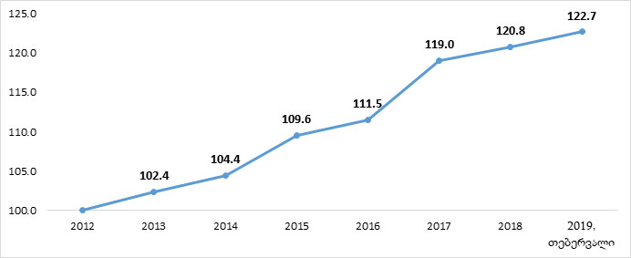 გრაფიკი: ფასების ზრდის ინდექსი. საბაზო წელი 2012.