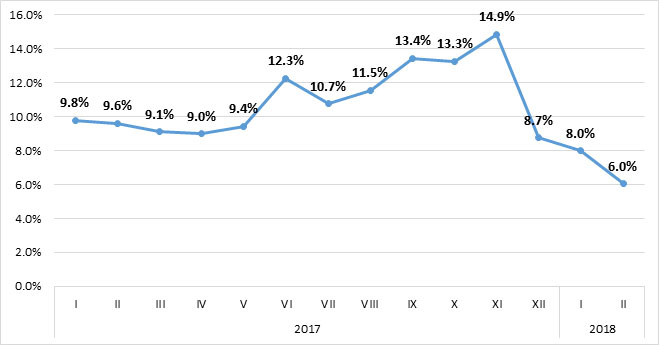 2018 წლის თებერვალში, წინა თვესთან შედარებით, ფასები 1%-ით შემცირდა გადამამუშავებელი მრეწველობის პროდუქციის ჯგუფზე, რაც მთლიანი ინდექსის კლებაზე – 0.78% პუნქტით აისახა. ფასები შემცირებულია მერქანსა და მერქნის ნაწარმზე (-13.1%), ქიმიურ ნივთიერებებზე, ქიმიურ პროდუქტებსა და ქიმიურ ბოჭკოებზე (-4.5%), ასევე ძირითად ლითონებსა და ლითონის მზა ნაწარმზე (-1.6%)