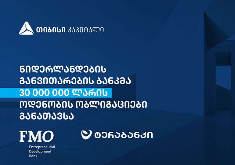 ნიდერლანდების განვითარების ბანკმა – FMO, თიბისი კაპიტალის მეშვეობით, 30 მილიონი ლარის ოდენობის ობლიგაციები განათავსა. განთავსება იურიდიული კომპანიის – MKD Law კონსულტაციითა და ჩართულობით შედგა. ობლიგაციების ვადა 5 წელია.