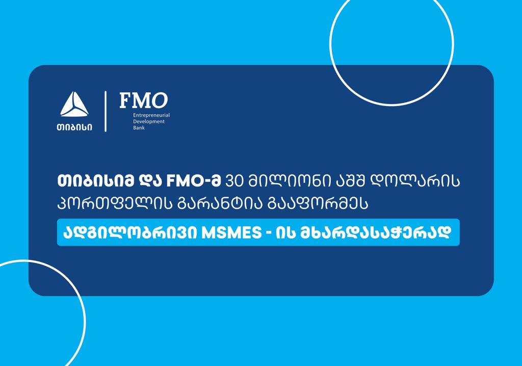 თიბისიმ და FMO-მ 30 მილიონი აშშ დოლარის საგარანტიო ხელშეკრულებას მოაწერეს ხელი. აღნიშნული საგარანტიო რესურსი FMO-სა და ევროკომისიის ერთობლივი ინოვაციური პროგრამაა, რომელიც მიზნად ისახავს ადგილობრივი მცირე და საშუალო ბიზნესების მხარდაჭერას დაფინანსების ხელმისაწვდომობის გაზრდის გზით.