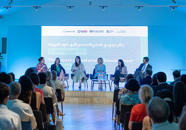 პანელური განხილვა მიეძღვნა მდგრადი განვითარების გავლენას საქართველოში. მონაწილეებმა ისაუბრეს მრავალფეროვნების მნიშვნელობასა და ქალთა გაძლიერებაზე, ფინანსურ ჩართულობაზე, არაფინანსური სერვისების მნიშვნელობაზე მდგრადი განვითარებისთვის, მდგრადი განვითარების ირგვლივ ცნობიერების ამაღლებასა და მხარდამჭერ ინიციატივებზე.