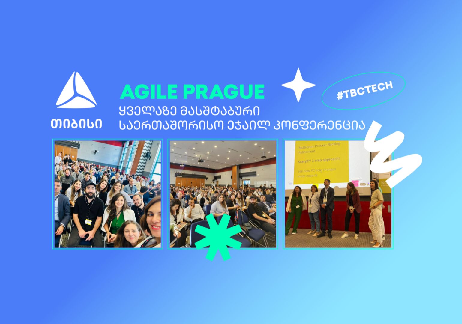 Agile Prague ევროპაში ერთ-ერთი ყველაზე დიდი კონფერენციაა, რომელიც უკვე 16 წელია ტარდება. თიბისიდან კონფერენციას 23 ადამიანი დაესწრო, მიზანი ერთმანეთისთვის წარმატების ისტორიისა და გამოცდილების გაზიარება, ცოდნის მიღება, აზრების გაცვლა და ახალი იდეების ჩამოტანაა.