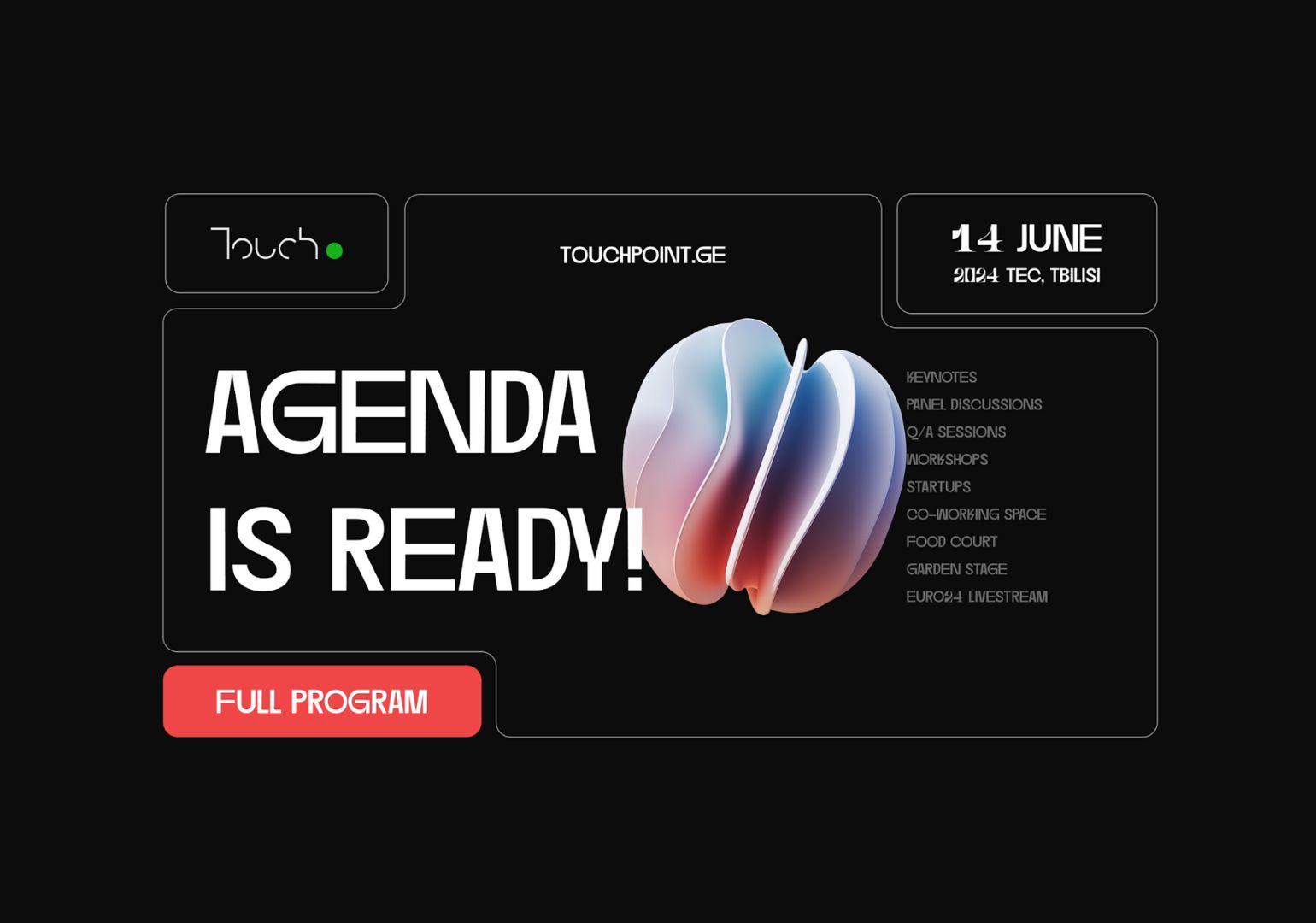 სულ რამდენიმე დღეში, 14 ივნისს, წლის მთავარი საერთაშორისო მარტექ ფესტივალი – Touch.Point გაიმართება. სრული პროგრამა უკვე ცნობილია: