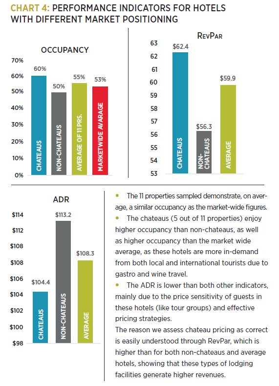 Performance indicators for hotels with different market positioning – in this case, chateaus and nonchateaus – are compared in a Chart 4.