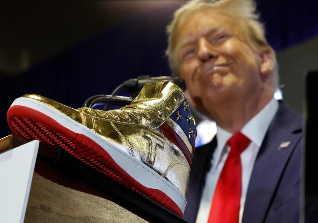 აშშ-ის ყოფილმა პრეზიდენტმა დონალდ ტრამპმა, მაღალყელიანი სპორტული ფეხსაცმელების ხაზი წარადგინა. ფეხსაცმლის ღირებულება $399-ია. ამ დრომდე, თეთრი სახლის ყოფილ ლიდერის გამოშვებული აქვს ციფრული სავაჭრო ბარათებისა და მაისურების ხაზი, რომელზედაც საპატიმროში გადაღებული მისი ფოტოა დატანილი.