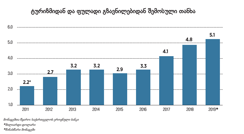პირველ რიგში მნიშვნელოვანია ის, რომ ტურიზმიდან და ფულადი გზავნილებიდან შემოსავლები სწრაფად იზრდება, განსაკუთრებით – 2016 წლიდან. 2015 წელს ვარდნა იყო რეგიონის ქვეყნებში არსებული კრიზისის გამო. 2016-2019 წლებში ტურიზმიდან და გზავნილებიდან ჯამში ყოველწლიურად საშუალოდ ნახევარი მილიარდი დოლარით მეტი შემოდიოდა, ვიდრე წინა წელს. წლიურ ნახევარმილიარდიან ზრდაში 350 მლნ დოლარი ტურიზმიდან მიღებულ შემოსავლებზე მოდის.
