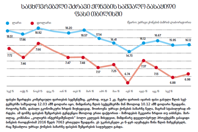 ეროვნული ვალუტის არასტაბილურობამ თავისი გავლენა ეკონომიკის თითქმის ყველა სეგმენტზე იქონია. ამ ფონზე საინტერესოა, რა ტენდენციები იკვეთება უძრავის ქონების ბაზარზე, რომელიც უკანასკნელი წლების განმავლობაში ერთ- ერთი წამყვანი დარგის სტატუსს ინარჩუნებს.