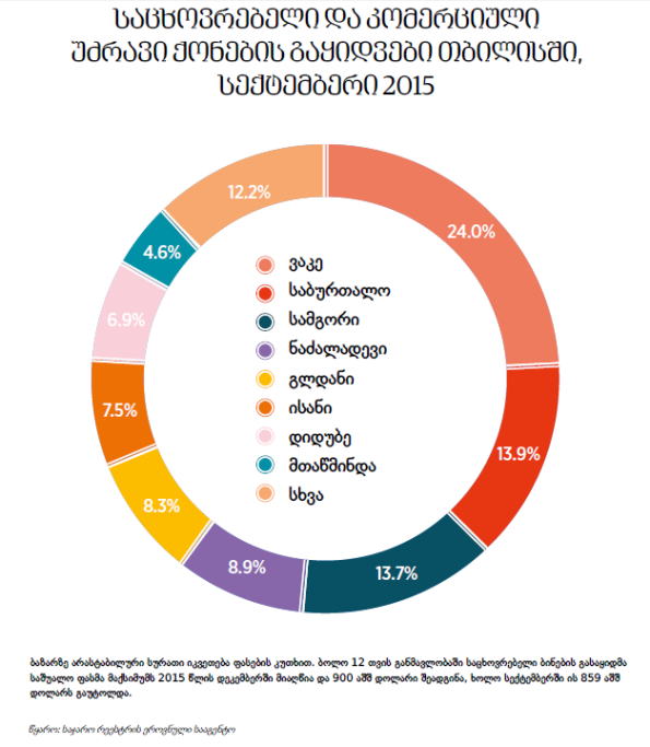 REI-ს ბოლო ანგარიში თბილისის უძრავი ქონების ბაზარზე ზრდის ტენდენციაზე მიანიშნებს. მეტიც, 2016 წლის სექტემბერში რეკორდული მაჩვენებელი – 3331 ერთეული საცხოვრებელი და კომერციული ფართის ყიდვა- გაყიდვა დაფიქსირდა, რაც 47 პროცენტით მეტია, ვიდრე წინა წლის სექტემბრის მაჩვენებელი. 2016 წელს აღნიშნულმა მაჩვენებელმა თვეში საშუალოდ 2642 ერთეული შეადგინა. თბილისის უბნებში პოპულარობის კუთხით ტრადიციულად ვაკე დომინირებს, რომლის წილი სექტემბრის გაყიდვებში 24 პროცენტი იყო.