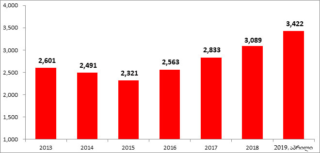2019 წლის აპრილში, წინა თვესთან, მარტთან, შედარებით, საქართველოს ეროვნული ბანკის (სებ) უცხოური ვალუტის რეზერვები 145 მილიონი დოლარით (4.4%-ით) გაიზარდა და 3.4 მილიარდი დოლარი შეადგინა, რაც რეკორდული მაჩვენებელია. აქამდე რეზერვების ყველაზე მაღალი მაჩვენებელი მიმდინარე წლის თებერვლის ბოლოს დაფიქსირდა – 3.3 მილიარდი დოლარი.