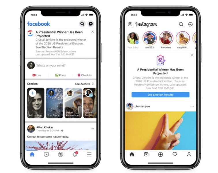 The company said it will provide users of Facebook and Instagram with a notification at the top of their screens that says “A Presidential Winner Has Been Projected.” The notifications will provide users with accurate information and direct them to the company’s voting information center.