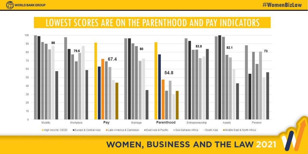 “While it is encouraging that many countries have proactively taken steps to help women navigate the pandemic, it’s clear that more work is needed, especially in improving parental leave and equalizing pay,” said Mari Pangestu, Managing Director of Development Policy and Partnerships, The World Bank. “Countries need to create a legal environment that enhances women’s economic inclusion, so that they can make the best choices for themselves and their families.”
